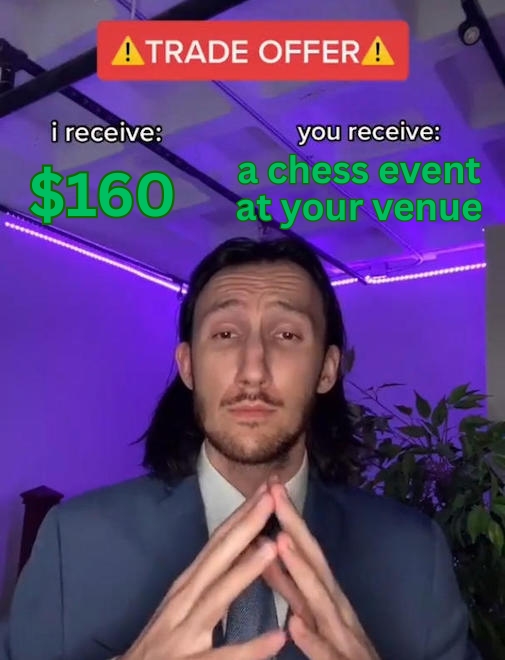 getting some income from this whole chess thing allows me spend a lil time doing online things to keep the chess nerds engaged between events...mostly in the form of making chess memes and hosting online tournaments. one time i spent a few hundred dollars getting custom punch cards and custom mugs made. the mugs were the prize for finishing the punch card ๐ฅ